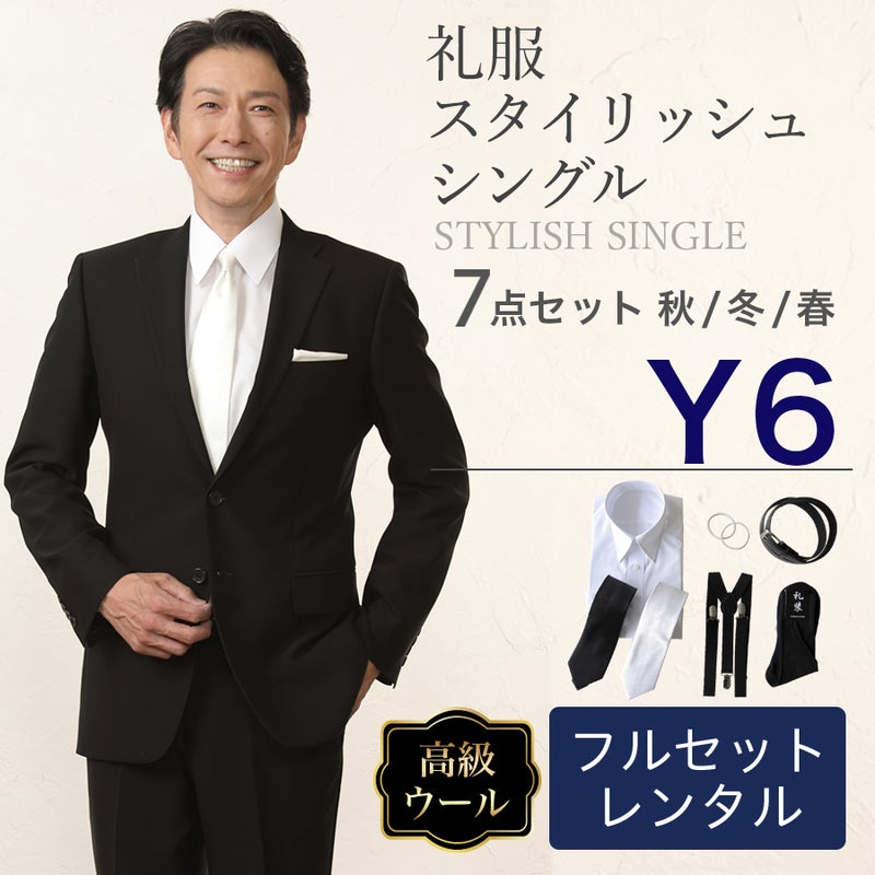 6. 【Y6サイズ】メンズ ウール素材使用スタイリッシュシングル7点セット 喪服・礼服・フォーマルレンタル