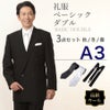 【A3サイズ】メンズ ウール素材使用ベーシックダブル3点セット 喪服・礼服・フォーマルレンタル