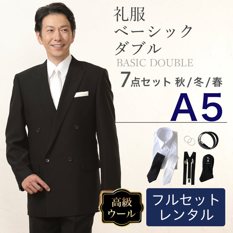 【A5サイズ】メンズ ウール素材使用ベーシックダブル7点セット 喪服・礼服・フォーマルレンタル
