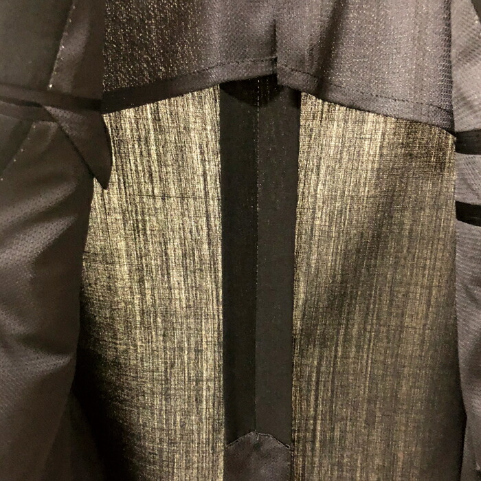 上着は背抜き、センターベント。