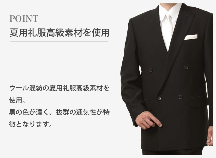 6. 【A5サイズ】メンズ 夏用ウール混素材使用ベーシックダブル3点セット 喪服・礼服・フォーマルレンタル