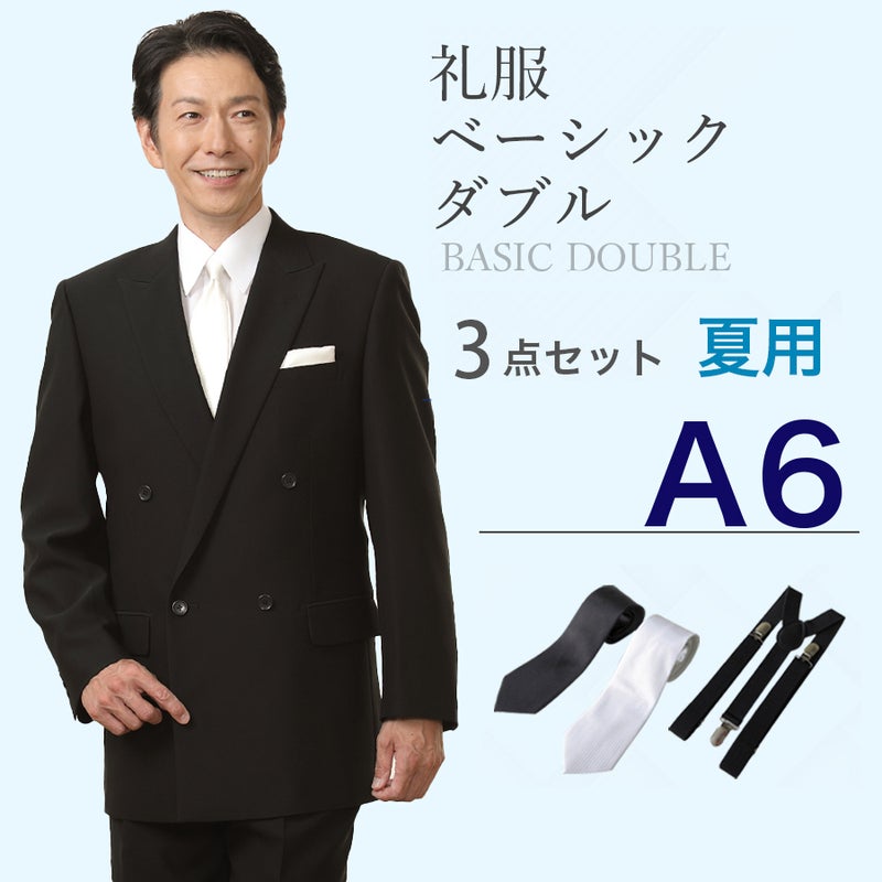 6. 【A6サイズ】メンズ 夏用ベーシックダブル3点セット 喪服・礼服・フォーマルレンタル