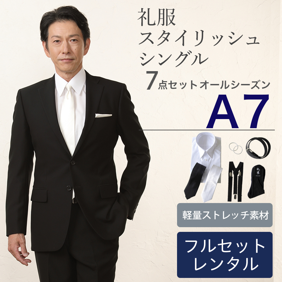 6. 【A7サイズ】メンズ スタイリッシュシングル7点セット 喪服・礼服・フォーマルレンタル