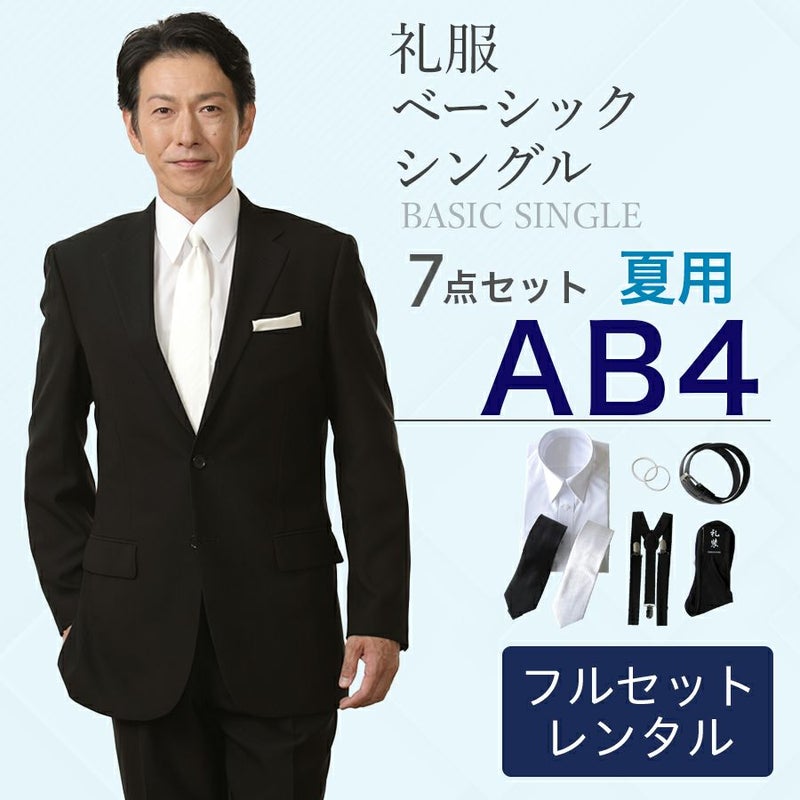 【AB4サイズ】メンズ 夏用ベーシックシングル 7点セット 喪服・礼服・フォーマルレンタル