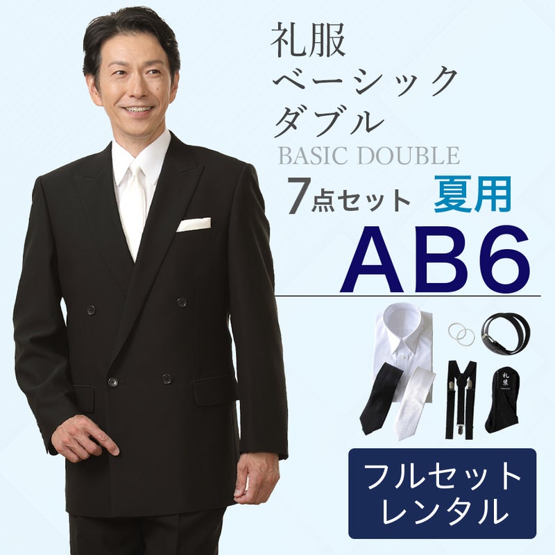 6. 【AB6サイズ】メンズ 夏用ウール混素材使用ベーシックダブル7点セット 喪服・礼服・フォーマルレンタル