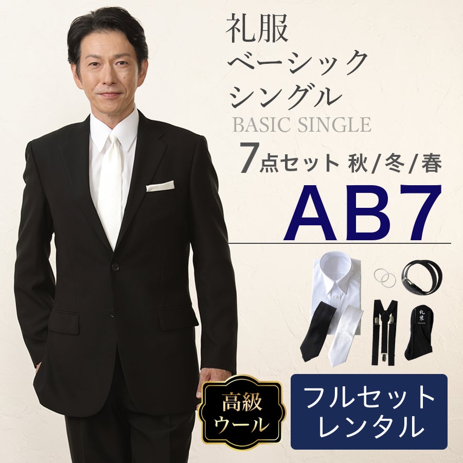 【AB7サイズ】メンズ ウール素材使用ベーシックシングル7点セット 喪服・礼服・フォーマルレンタル