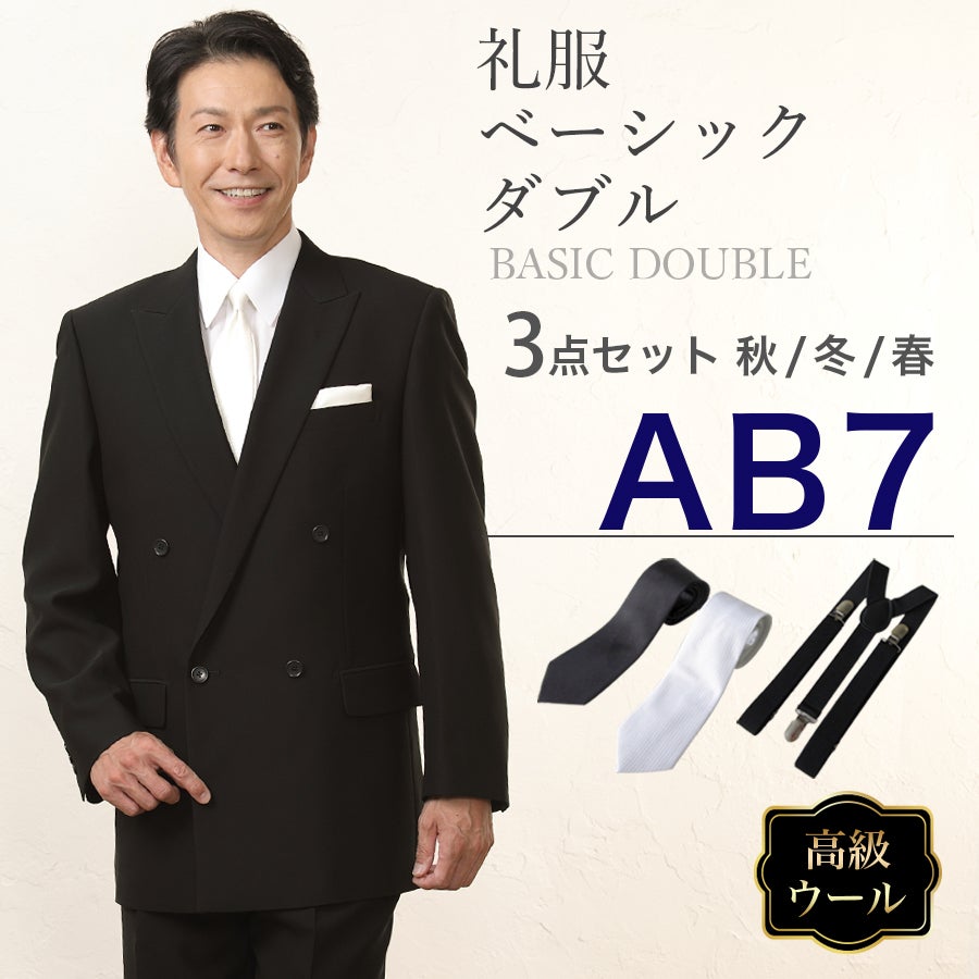 【AB7サイズ】メンズ ウール素材使用ベーシックダブル3点セット 喪服・礼服・フォーマルレンタル