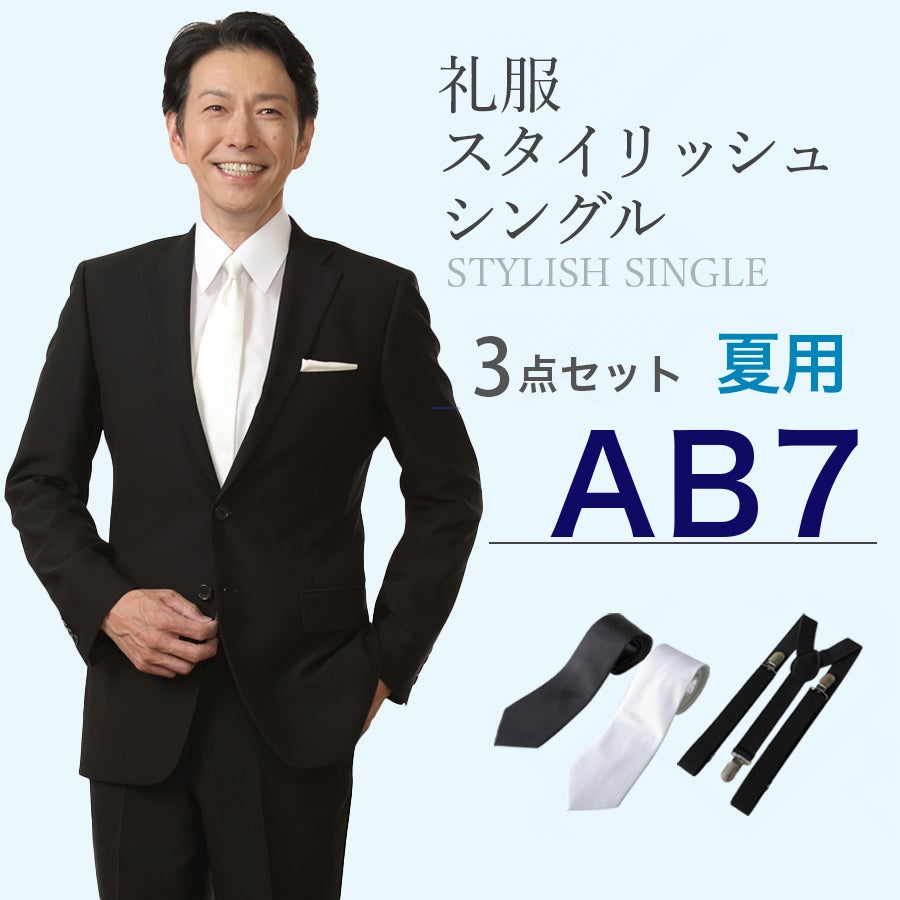 【AB7サイズ】メンズ 夏用スタイリッシュシングル7点セット 喪服・礼服・フォーマルレンタル