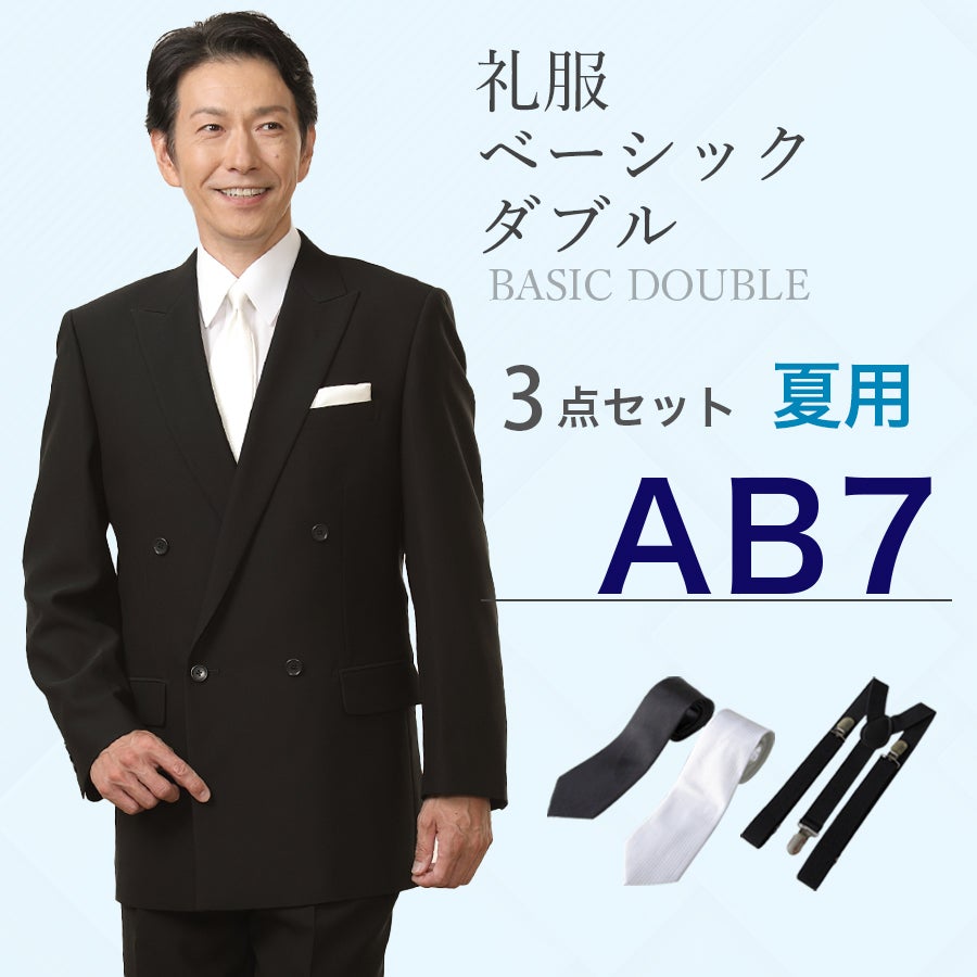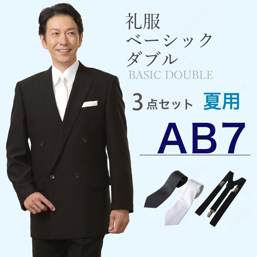 【AB7サイズ】メンズ 夏用ベーシックダブル3点セット 喪服・礼服・フォーマルレンタル