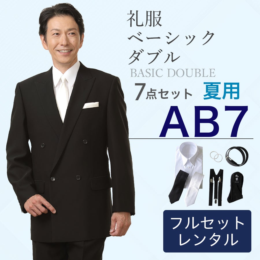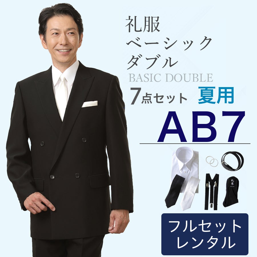 【AB7サイズ】メンズ 夏用ベーシックダブル7点セット 喪服・礼服・フォーマルレンタル
