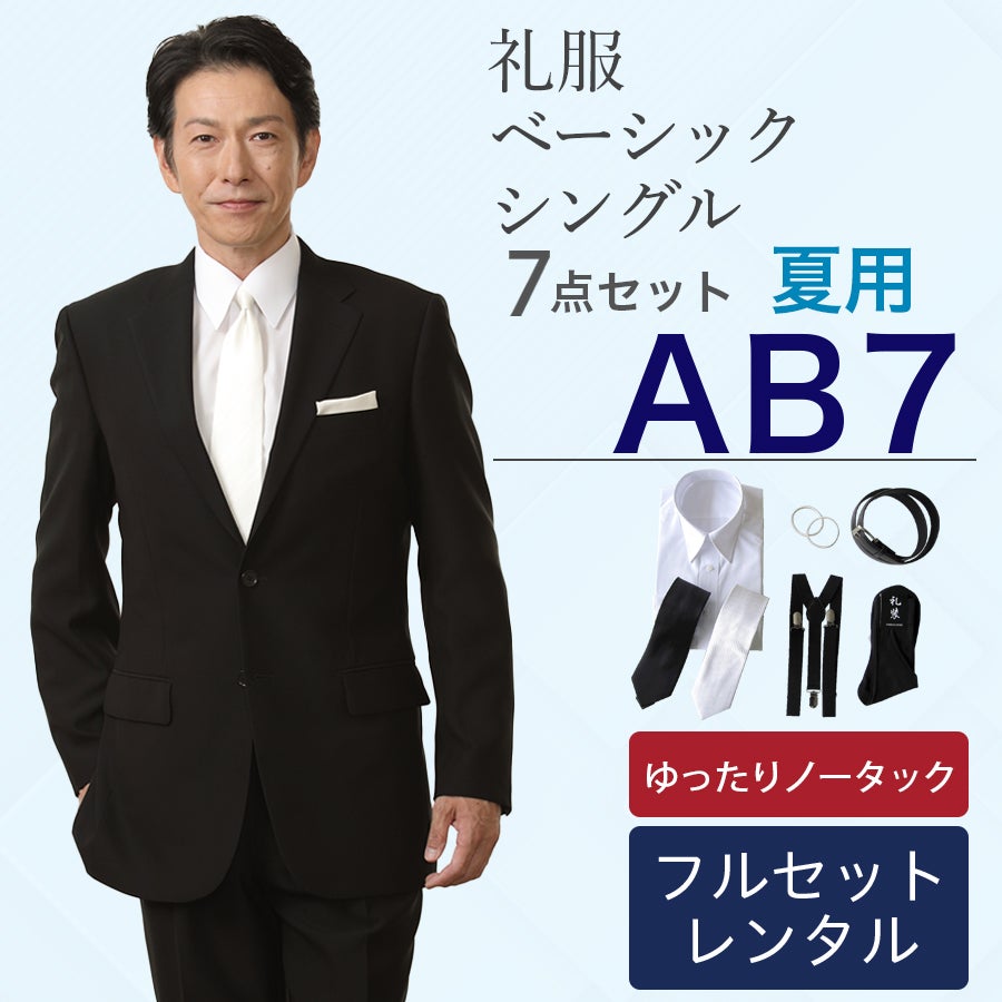 【AB7サイズ】メンズ 夏用ゆったりノータックシングル7点セット 喪服・礼服・フォーマルレンタル