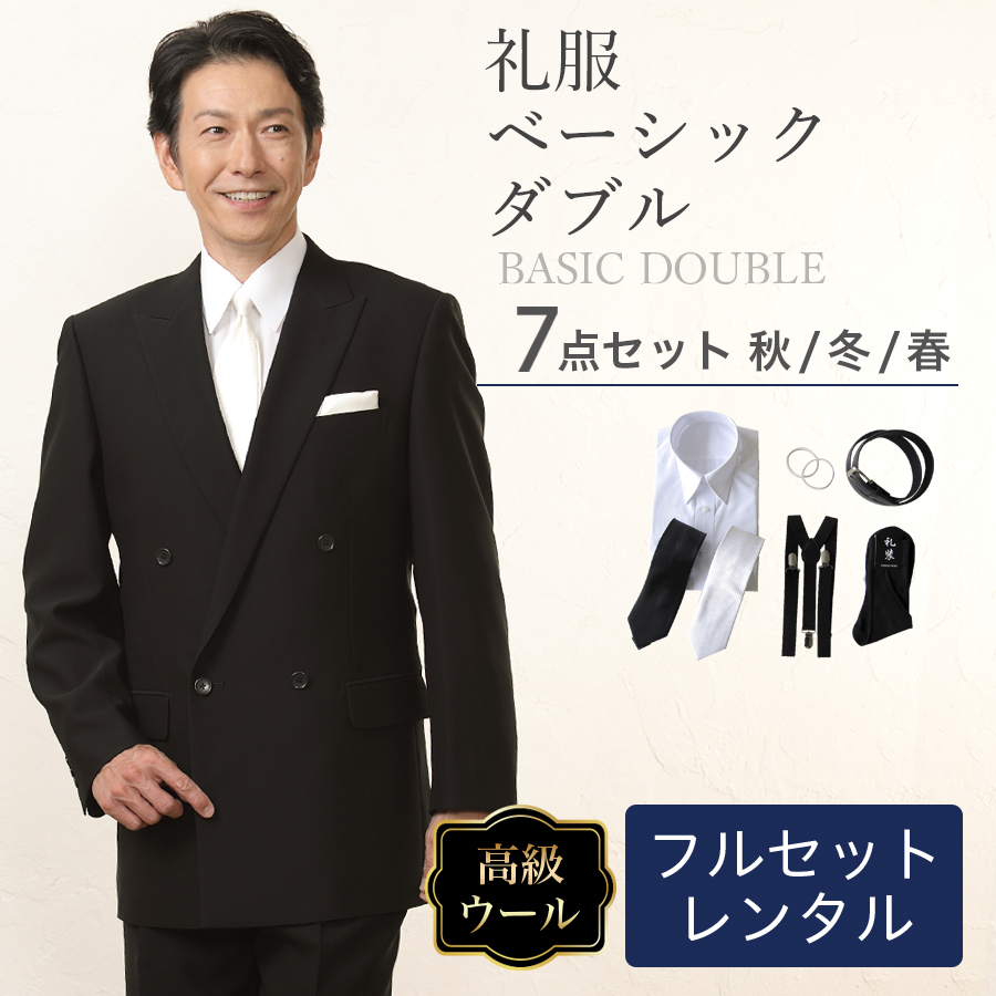 【レンタル】ウール素材使用ベーシックダブル7点セット [男性用] [喪服 レンタル] [礼服 レンタル] [フォーマル レンタル] [スーツ レンタル] [喪服 メンズ] [礼服 メンズ] [大きいサイズ] [セット] [葬儀] [結婚式] [翌日配送] [送料無料] [FOL-1200-F]