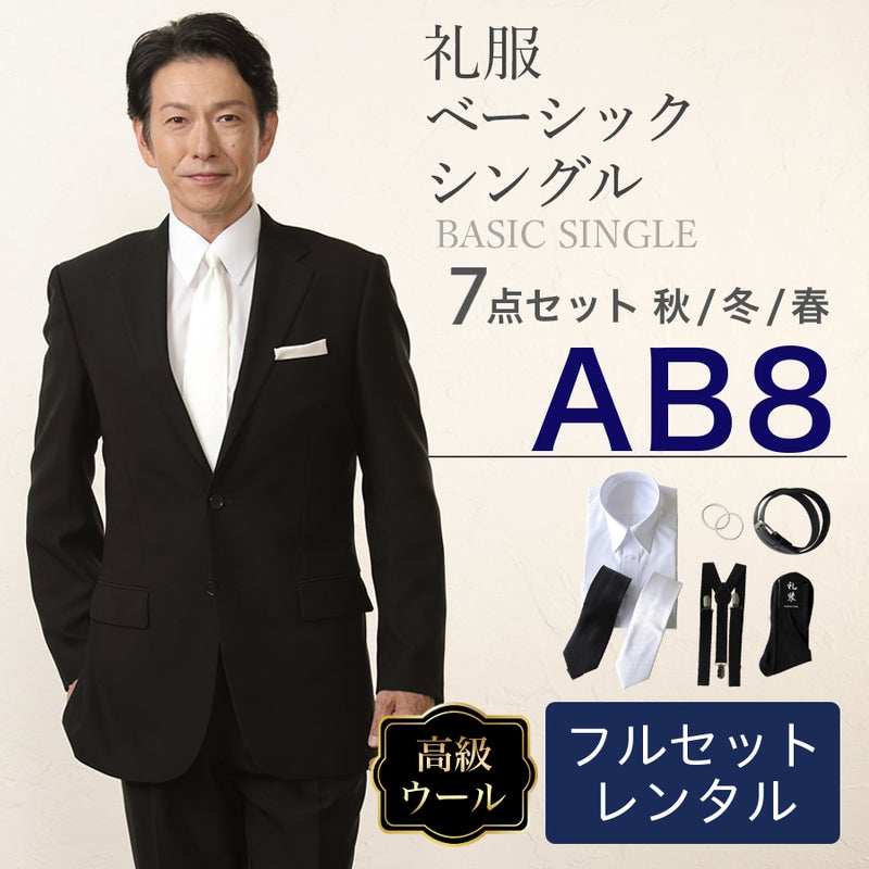 6. 【AB8サイズ】メンズ ウール素材使用ベーシックシングル7点セット 喪服・礼服・フォーマルレンタル