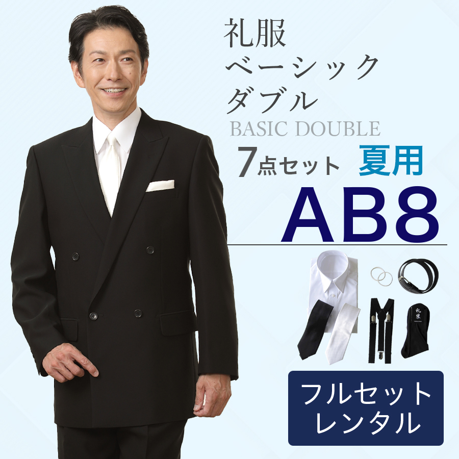 【AB8サイズ】メンズ 夏用ウール混素材使用ベーシックダブル7点セット 喪服・礼服・フォーマルレンタル