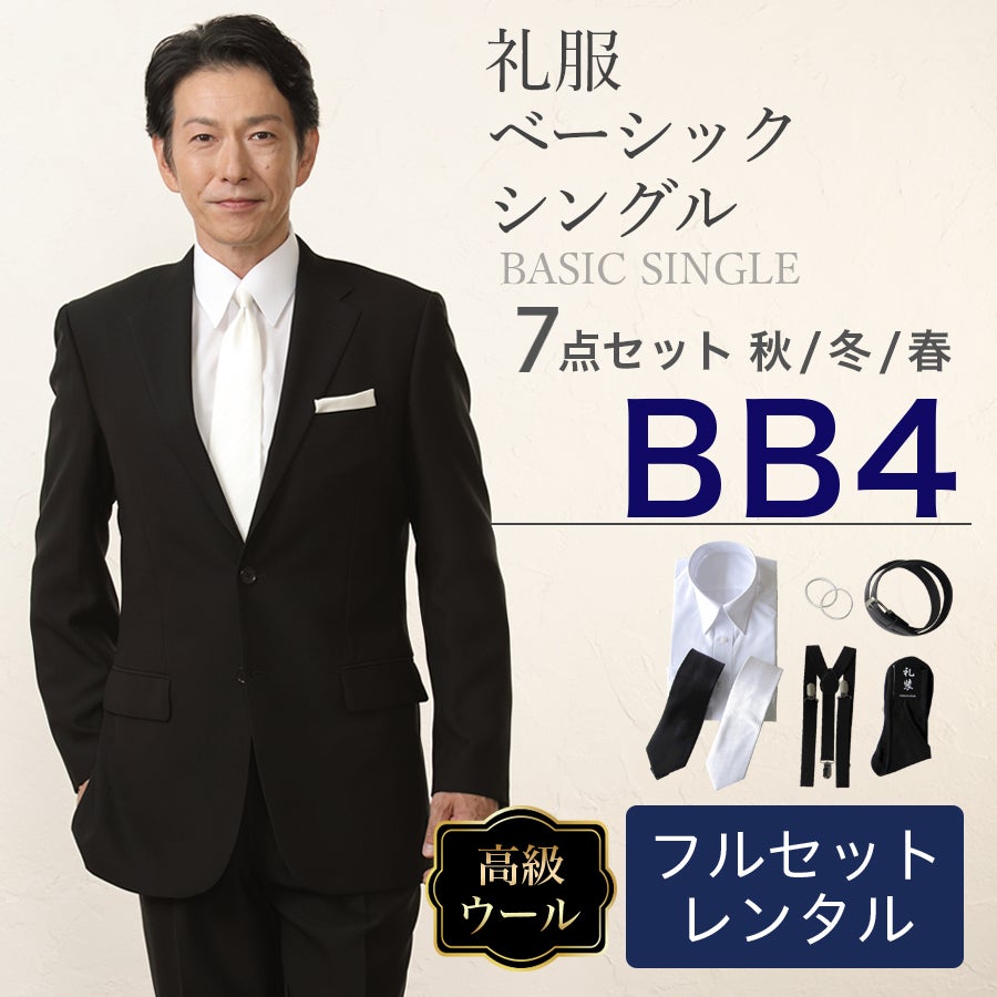 【BB4サイズ】メンズ ウール素材使用ベーシックシングル7点セット 喪服・礼服・フォーマルレンタル