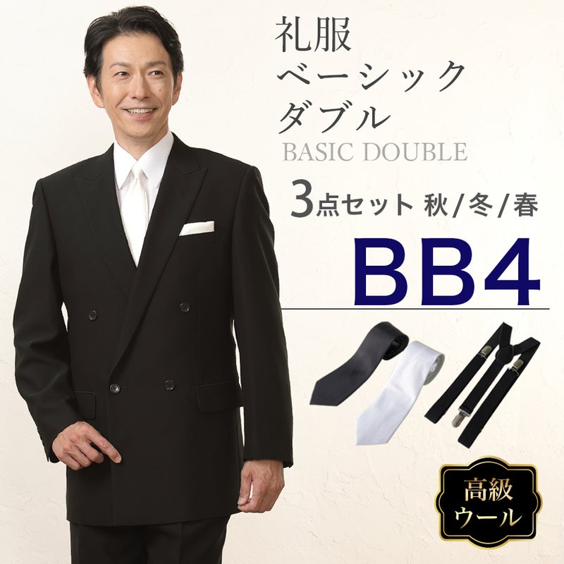 6. 【BB4サイズ】メンズ ウール素材使用ベーシックダブル3点セット 喪服・礼服・フォーマルレンタル