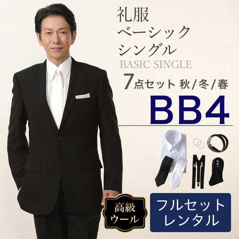 6. 【BB4サイズ】メンズ ウール素材使用ベーシックシングル7点セット 喪服・礼服・フォーマルレンタル