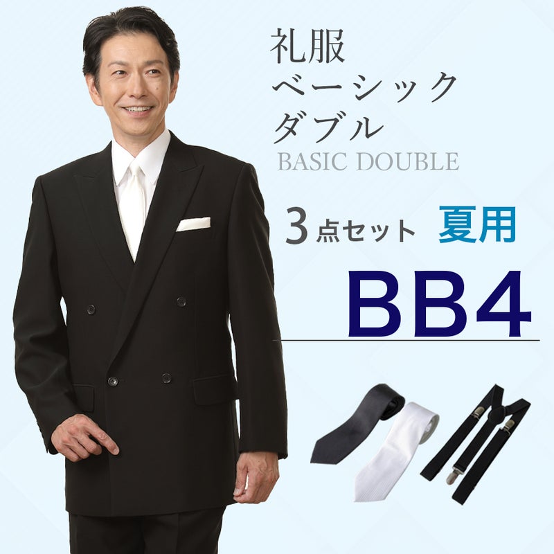 6. 【BB4サイズ】メンズ 夏用ウール混素材使用ベーシックダブル3点セット 喪服・礼服・フォーマルレンタル
