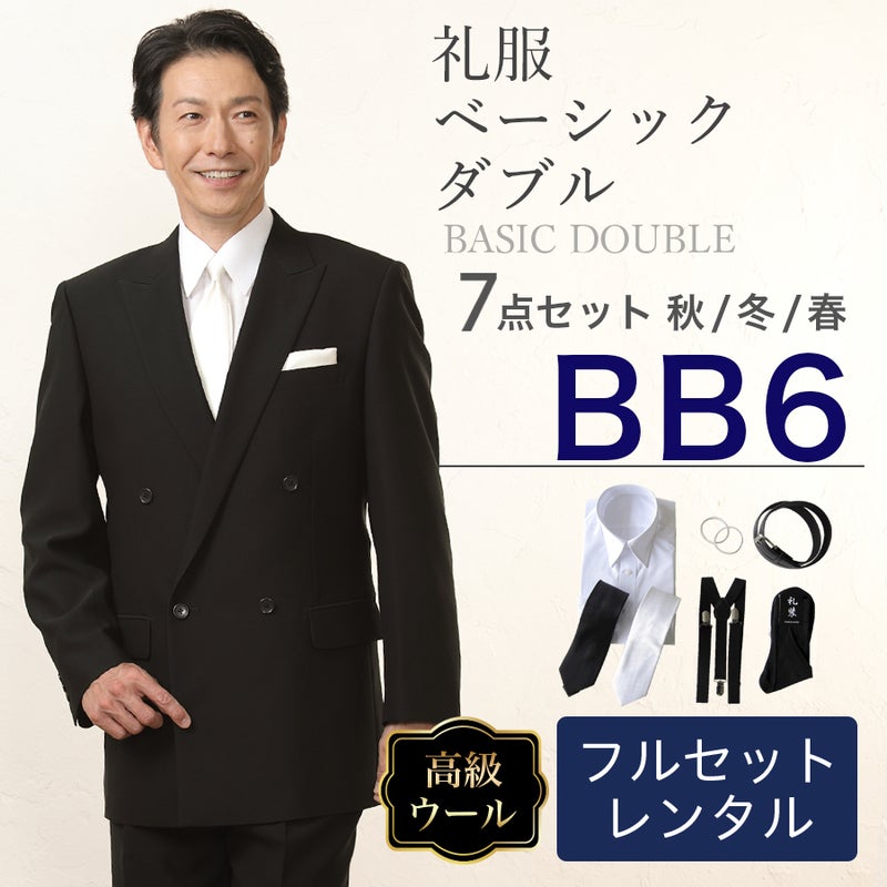 6. 【BB6サイズ】メンズ ウール素材使用ベーシックダブル7点セット 喪服・礼服・フォーマルレンタル