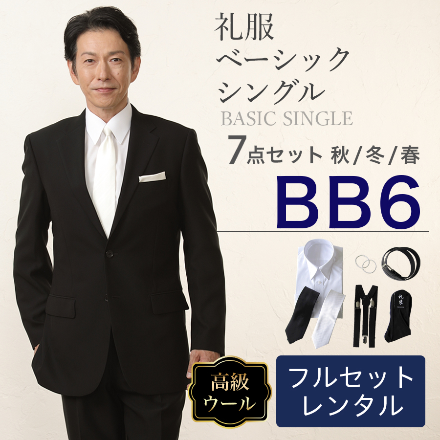 6. 【BB6サイズ】メンズ ウール素材使用ベーシックシングル7点セット 喪服・礼服・フォーマルレンタル
