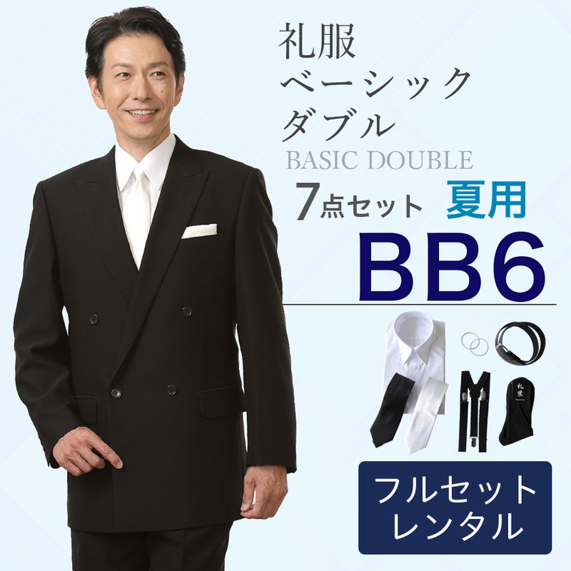 6. 【BB6サイズ】メンズ 夏用ウール混素材使用ベーシックダブル7点セット 喪服・礼服・フォーマルレンタル