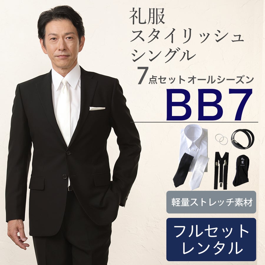 【BB7サイズ】メンズ スタイリッシュシングル7点セット 喪服・礼服・フォーマルレンタル
