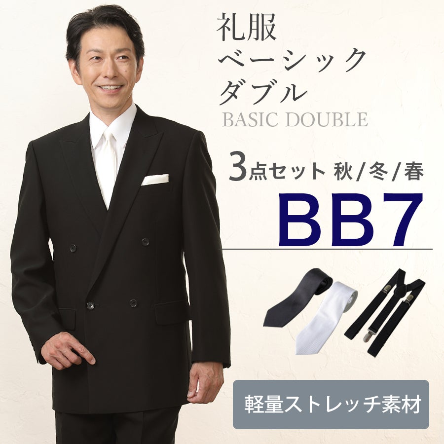 【BB7サイズ】メンズ ベーシックダブル軽量ストレッチ3点セット 喪服・礼服・フォーマルレンタル