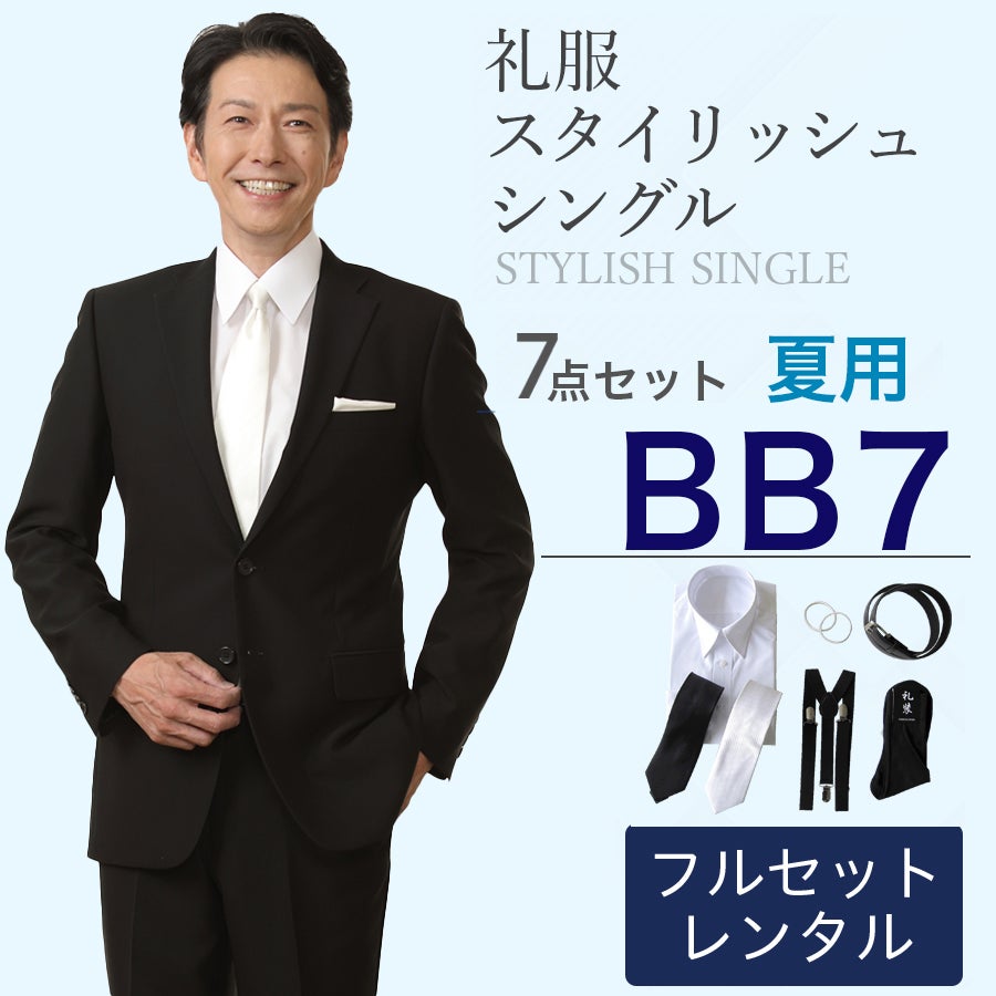 【BB7サイズ】メンズ 夏用ベーシックシングル 7点セット 喪服・礼服・フォーマルレンタル