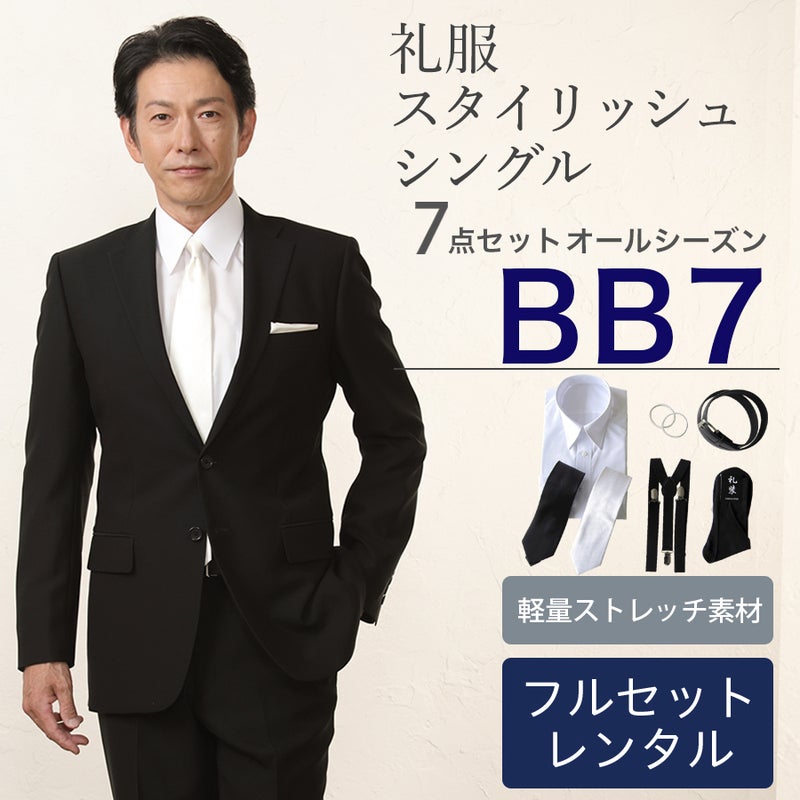 6. 【BB7サイズ】メンズ スタイリッシュシングル7点セット 喪服・礼服・フォーマルレンタル