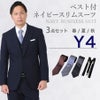 6. 【Y4サイズ】メンズ ベスト付ネイビー(濃)スリムスーツ3点セット 喪服・礼服・フォーマルレンタル