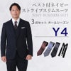 6. 【Y4サイズ】メンズ ベスト付ネイビーストライプスリムスーツ3点セット 秋冬用スーツレンタル