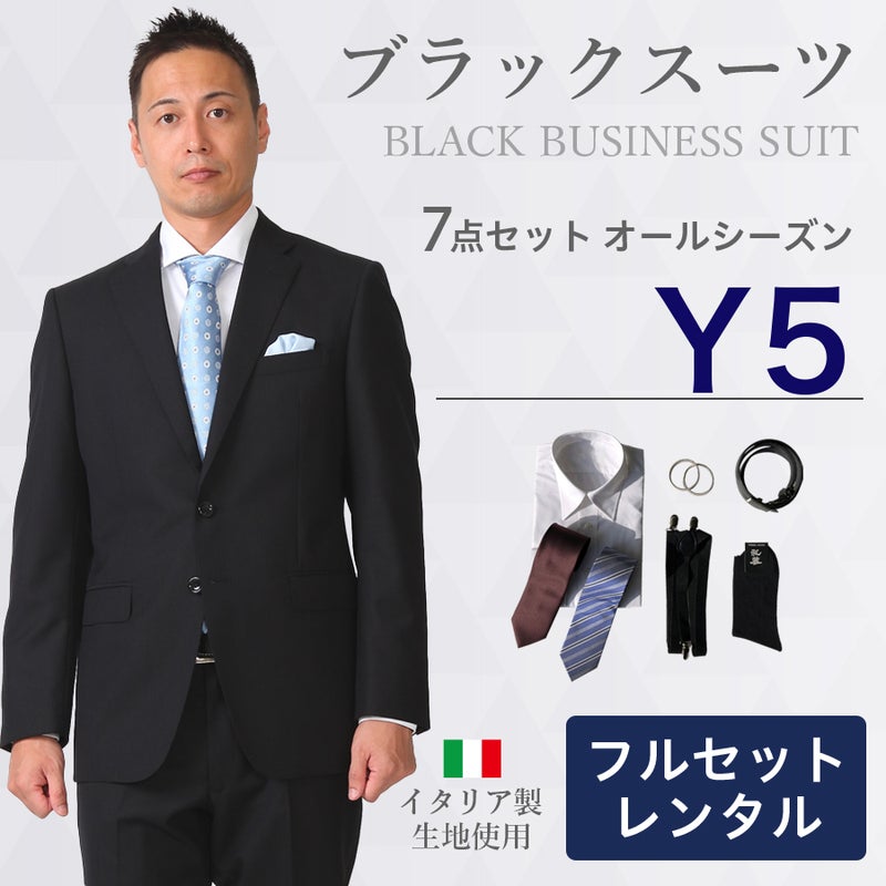 【Y5サイズ】メンズ ブラックスーツ7点セット 喪服・礼服・フォーマルレンタル