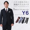 6. 【Y6サイズ】メンズ ベスト付ネイビー無地スリムスーツ3点セット 秋冬用スーツレンタル