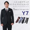 6. 【Y7サイズ】メンズ ベスト付ブラックストライプスリムスーツ3点セット 秋冬用スーツレンタル