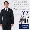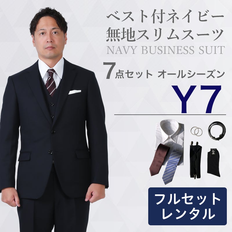 6. 【Y7サイズ】メンズ ベスト付ネイビー無地スリムスーツ7点セット 秋冬用レンタルスーツ