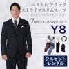 6. 【Y8サイズ】メンズ ベスト付ブラックストライプスリムスーツ7点セット 秋冬用レンタルスーツ