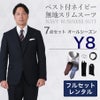6. 【Y8サイズ】メンズ ベスト付ネイビー無地スリムスーツ7点セット 秋冬用レンタルスーツ