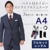 【A4サイズ】メンズ ベスト付ネイビー(ストライプ)スリムスーツ7点セット 喪服・礼服・フォーマルレンタル