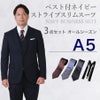 6. 【A5サイズ】メンズ ベスト付ネイビーストライプスリムスーツ3点セット 秋冬用スーツレンタル