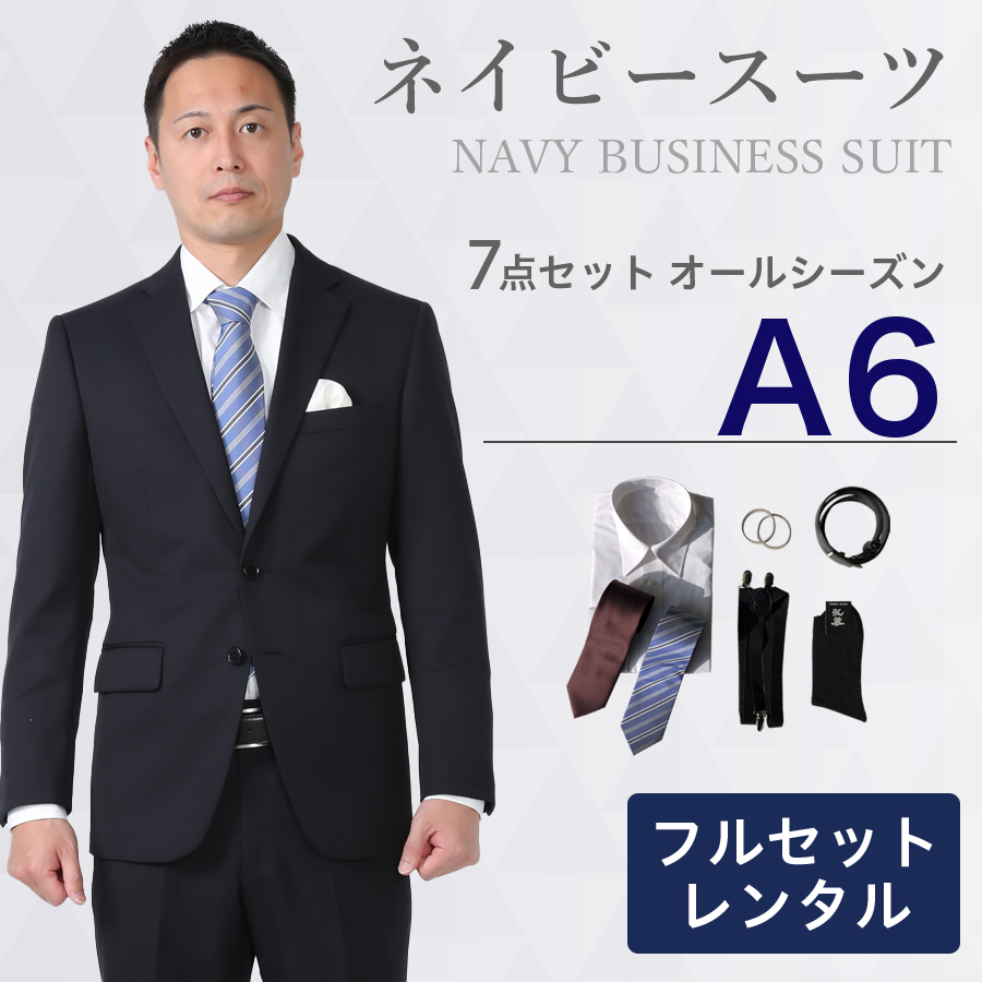 6. 【A6サイズ】メンズ ネイビースーツ7点セット 喪服・礼服・フォーマルレンタル