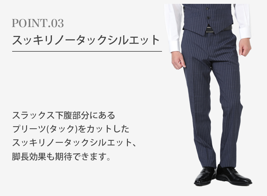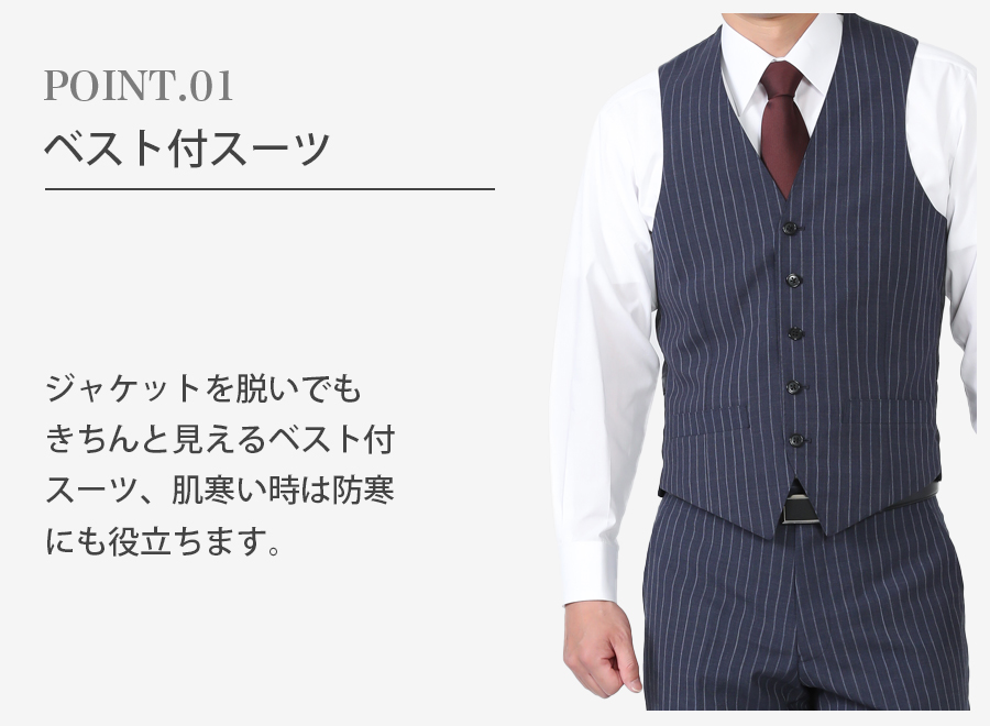 6. 【A7サイズ】メンズ ベスト付ネイビー(ストライプ)スリムスーツ3点セット 喪服・礼服・フォーマルレンタル