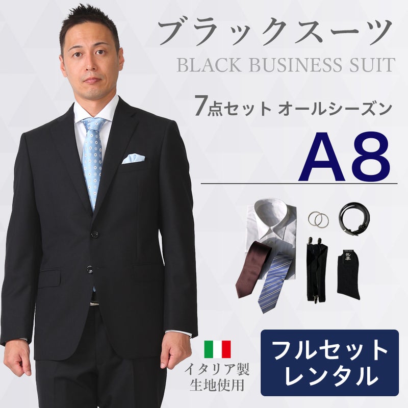 6. 【A8サイズ】メンズ ブラックスーツ7点セット 喪服・礼服・フォーマルレンタル