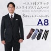 【A8サイズ】メンズ ベスト付ブラックストライプスリムスーツ3点セット 秋冬用スーツレンタル