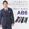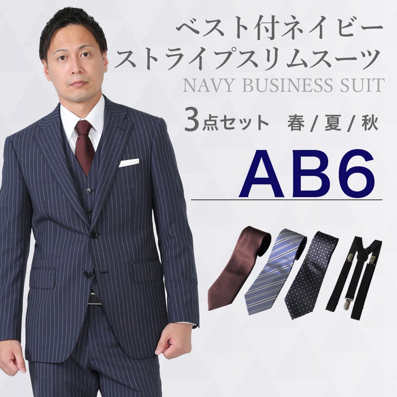 6. 【AB6サイズ】メンズ ベスト付ネイビー(ストライプ)スリムスーツ3点セット 喪服・礼服・フォーマルレンタル