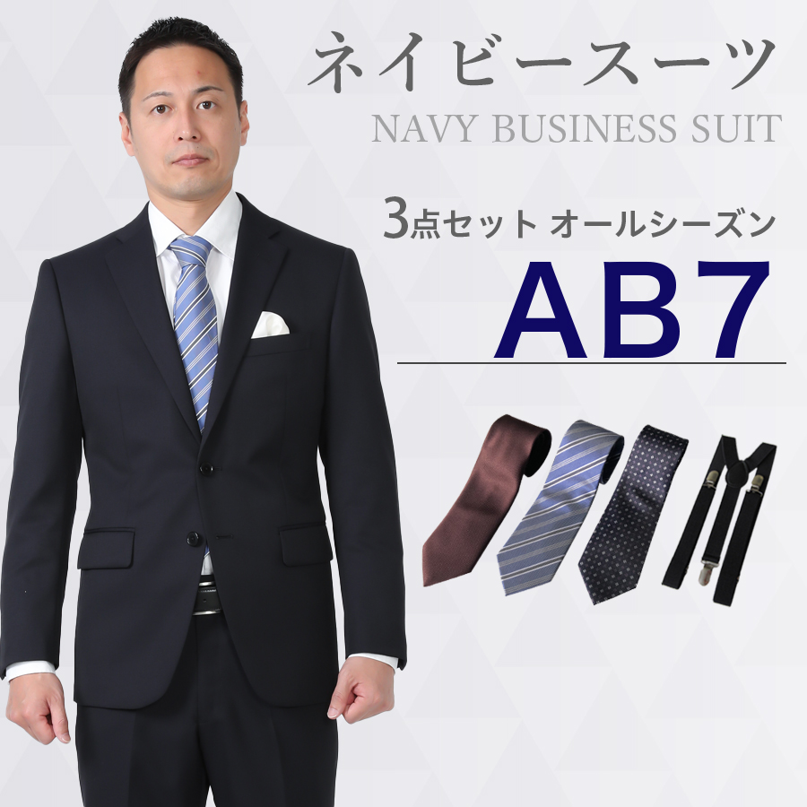 6. 【AB7サイズ】メンズ ネイビースーツ3点セット 喪服・礼服・フォーマルレンタル