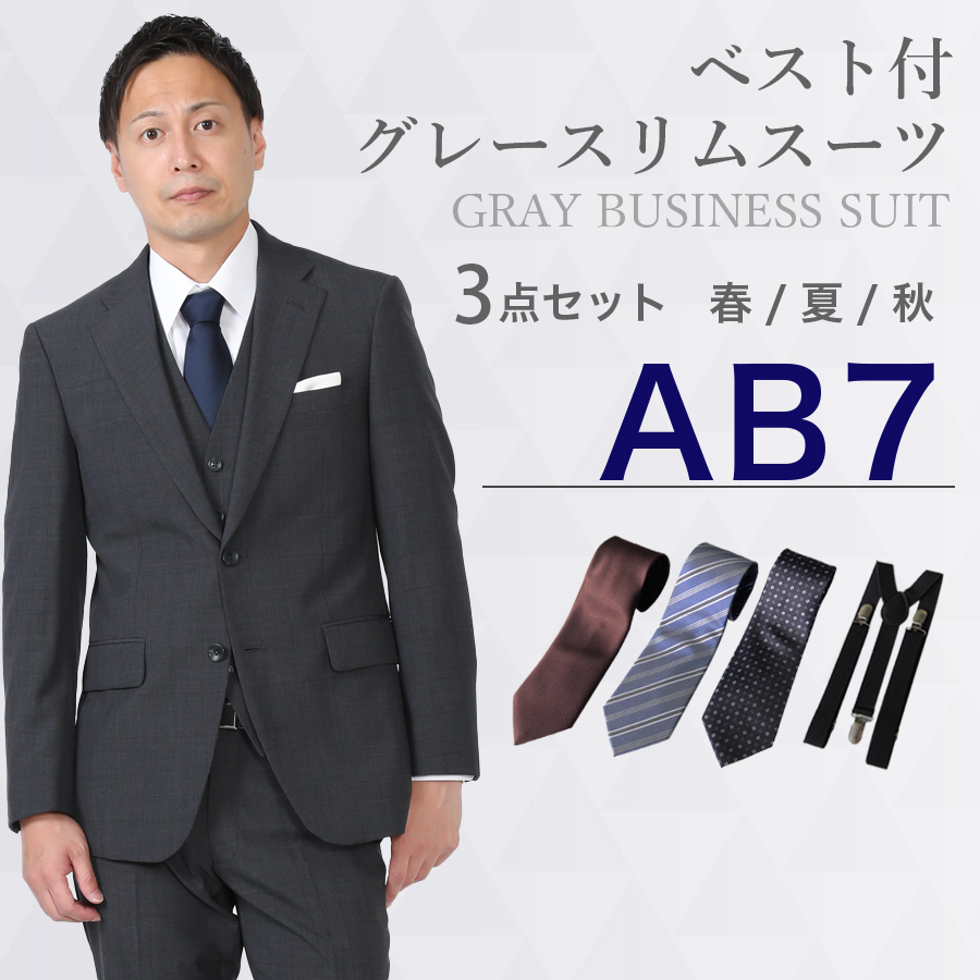 6. 【AB7サイズ】メンズ ベスト付グレースリムスーツ3点セット 喪服・礼服・フォーマルレンタル