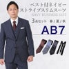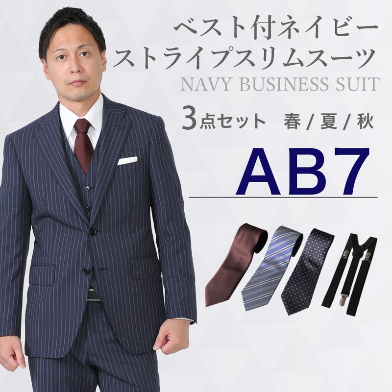 6. 【AB7サイズ】メンズ ベスト付ネイビー(ストライプ)スリムスーツ3点セット 喪服・礼服・フォーマルレンタル