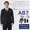 【AB7サイズ】メンズ ベスト付ブラックストライプスリムスーツ7点セット 秋冬用レンタルスーツ