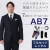 6. 【AB7サイズ】メンズ ベスト付ネイビー無地スリムスーツ7点セット 秋冬用レンタルスーツ