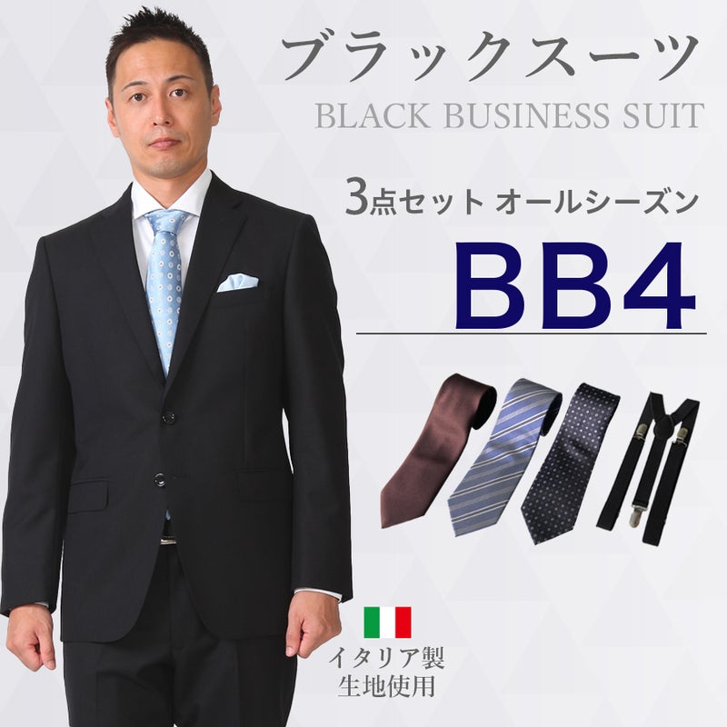 6. 【BB4サイズ】メンズ BB体ブラックスーツ3点セット 喪服・礼服・フォーマルレンタル